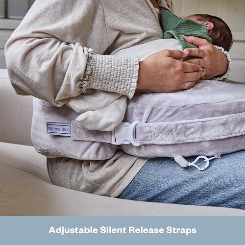 My Brest Friend's signature wrap-around nursing pillow locks securely in place with a flat, stable surface and lumbar support for comfortable, hands-free feeding....