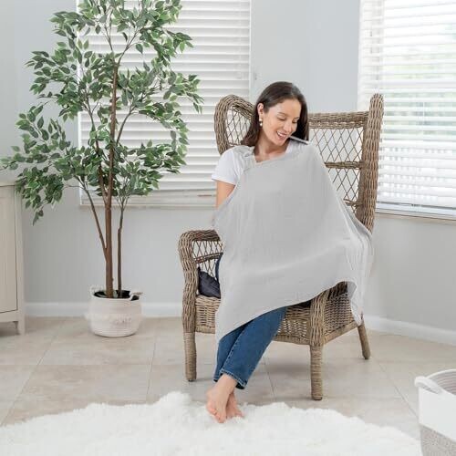 Nursing Cover for Moms - 100% Cotton Muslin Breastfeeding Cover with Adjustable Strap, 360° Privacy