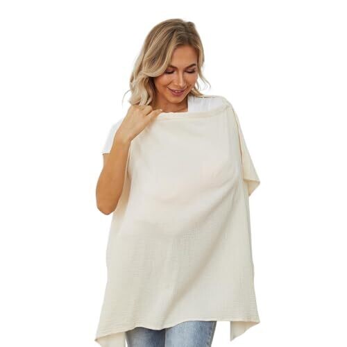 • Ruibex Breastfeeding Cover, Soft Muslin Nursing Cover with Rigid Hoop In Beige