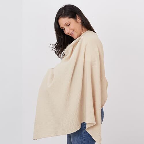 • Soft, breathable muslin nursing cover designed for comfortable on-the-go breastfeeding.