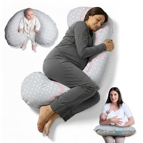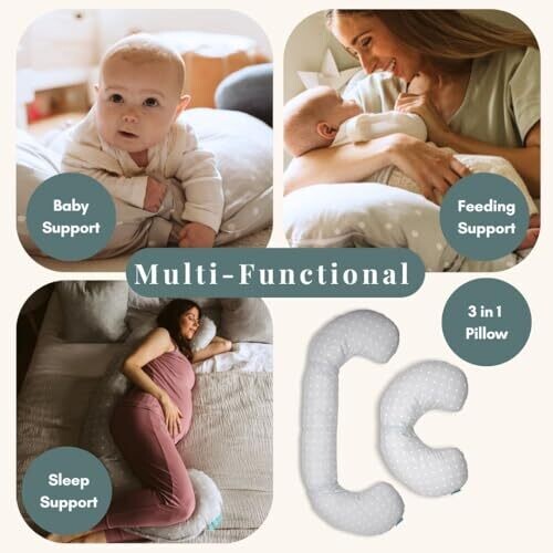 Experience full-body support designed for pregnancy and breastfeeding. This versatile 3-in-1 C-shaped pillow eases aches, supports bump, back, hips, neck and legs, and can be reconfigured for nursing. Detachable covers keep cleaning easy while soft materials soothe mom and baby.