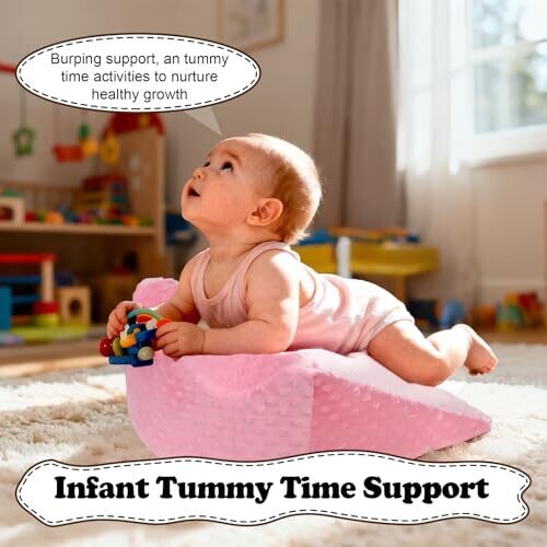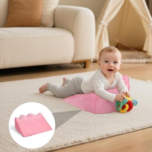 • Funpkoser Infants Tummy Time Prop | Gas Relief with Foam Support | Neck (Pink)
