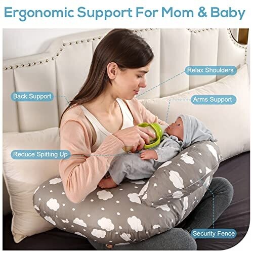 • Marketing-friendly nursing pillow designed for both mother and baby comfort during breastfeeding and bottle feeding.
