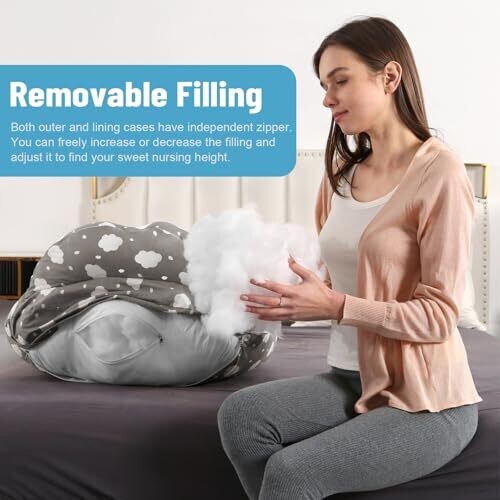 Filling and cover are both removable with zippers to adjust fullness and perform cleaning.