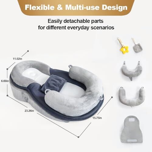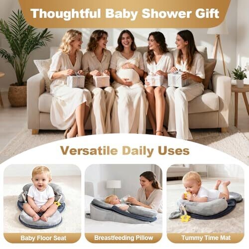 • 4-in-1 design combines a nursing pillow, tummy time mat, baby floor seat, and detachable wedge support for growing needs.