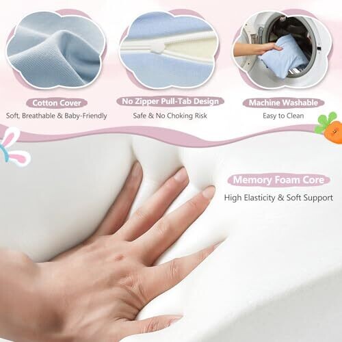 • Breathable cotton cover with a memory foam core for steady, comfortable support.