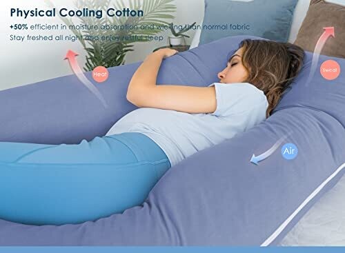 Queen Rose Pregnancy Pillows, Organic Cotton U Shaped Body Pillow, Cooling Pillow (Blue)