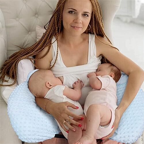 Tailored for twin pregnancies and breastfeeding, this ergonomic pillow supports two babies at once, easing nursing. Soft plush material gives a cozy cuddle, while adjustable positioning promotes better posture during long feeds and transitions to solids.
