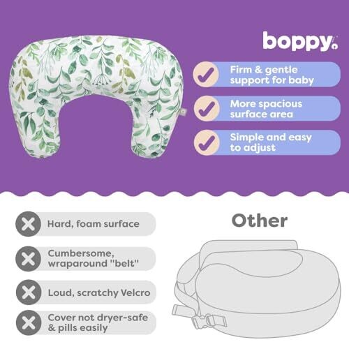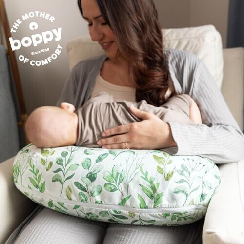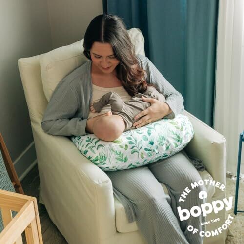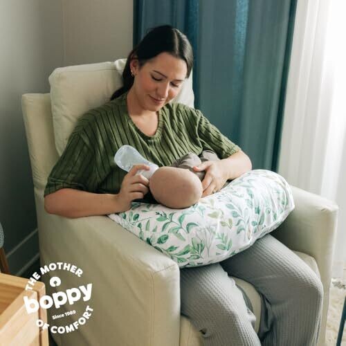 Boppy Pillow for Bottle & Breastfeeding - Ergonomic Cushion, Sage Green Leaf