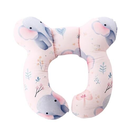 Soft and supportive U-shaped nursing pillow designed for babies and toddlers, providing gentle neck and head comfort. Features a cartoon design, a reversible surface for abdominal support or neck padding, and lightweight portability for trips, naps, and daily routines.