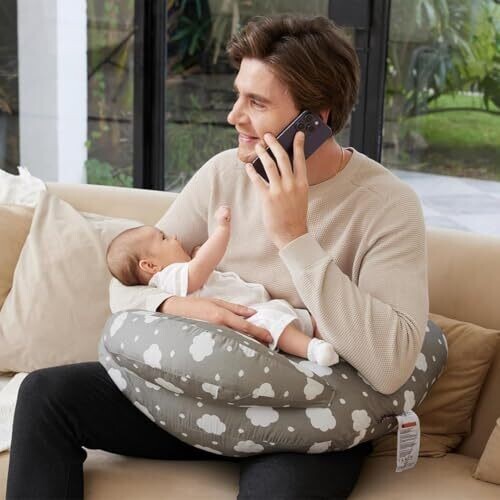 Experience hands-free nursing with a versatile U-shaped pillow that grows with your baby from newborn to sitting age. It supports feeding, lounging, and sitting, with an adjustable waist belt, removable cover, and secure three-sided safety features.