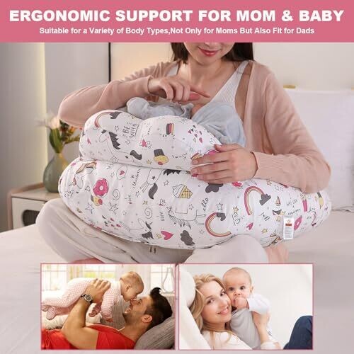 • Rainbow Donut Nursing Pillow with an ergonomic U-shaped design delivers targeted support for mother and baby during breastfeeding and pregnancy.