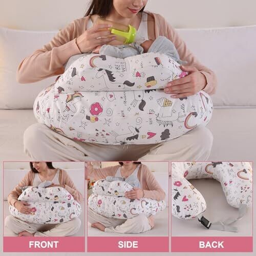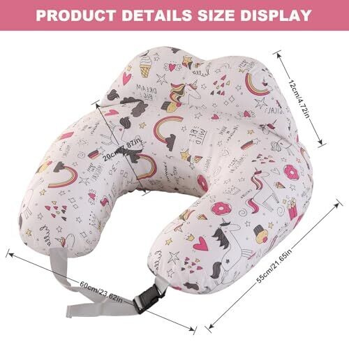 • Nursing Pillow, Breastfeeding Pillow with Waist Belt (Rainbow Donut)