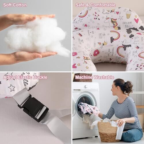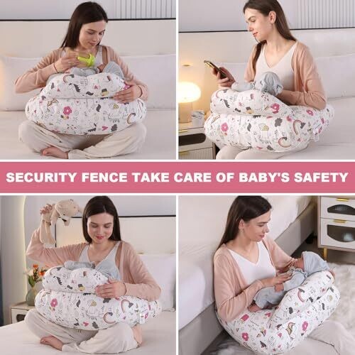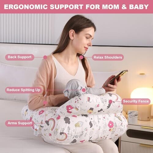 Versatile function as nursing pillow, baby support cushion, waist pillow, and sleep aid.