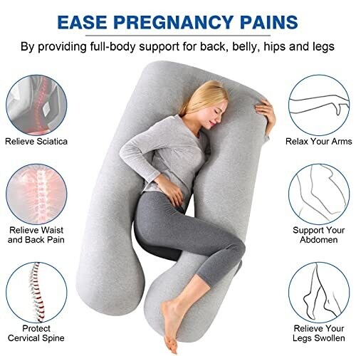 • Ergonomic U-shaped design tailored to the curves of pregnancy, helping to relieve common discomfort and improve sleep quality.