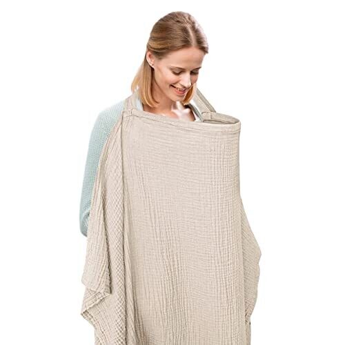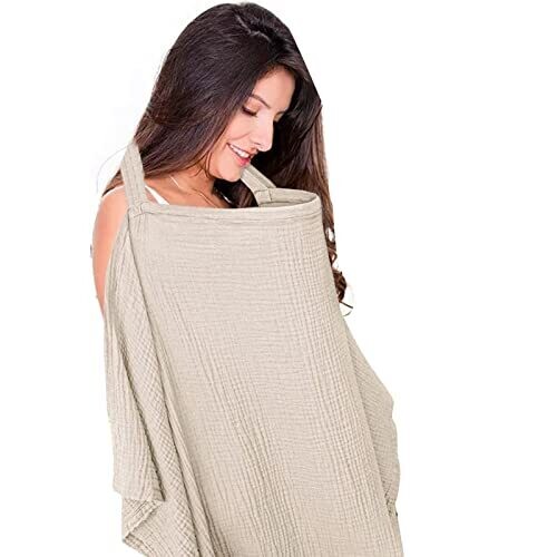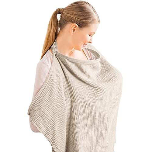 Ruibex Breastfeeding Cover, Soft Muslin Nursing Cover with Rigid Hoop In Beige