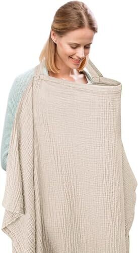 Nursing Cover for Moms - 100% Cotton Muslin Breastfeeding Cover with Adjustable Strap, 360° Privacy