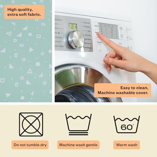 • Elevate feeding sessions with a stylish, minty geometric slipcover that complements any nursery.