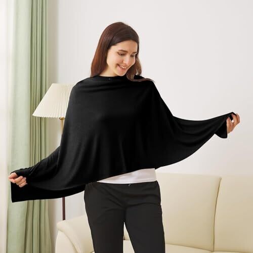 • Nursing Breastfeeding Cover, 360° Full Coverage Muslin Poncho (Black)