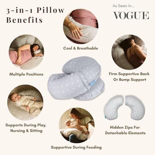 Experience full-body support designed for pregnancy and breastfeeding. This versatile 3-in-1 C-shaped pillow eases aches, supports bump, back, hips, neck and legs, and can be reconfigured for nursing. Detachable covers keep cleaning easy while soft materials soothe mom and baby.