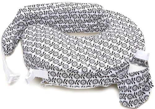 Back Rest to maintain posture during feeding to prevent sore backs and necks. Deluxe Plush Cover 100% baby soft. Wrap Around Design secures to the body to help mum and baby maintain ideal positioning and latch-on. Firm and flat front cushion eliminates gaps between the baby and mother and helps prevent rolling during breastfeeding. Arm and elbow rests to reduce shoulder stress.