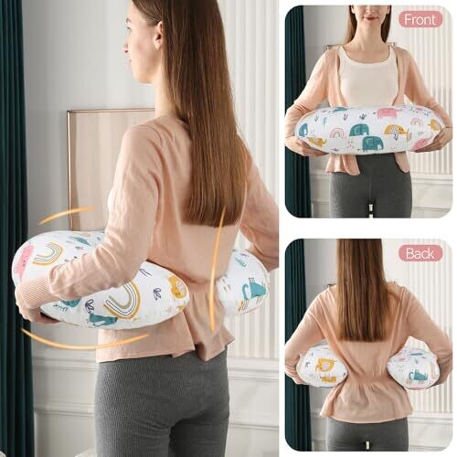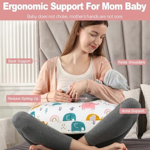 - A versatile nursing pillow designed to support mom and baby during breastfeeding, bottle feeding, and lounging times.
