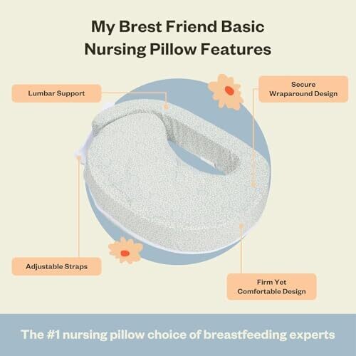 My Brest Friend's signature wrap-around nursing pillow locks securely in place with a flat, stable surface and lumbar support for comfortable, hands-free feeding....