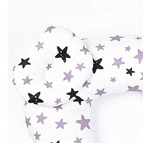made with organic cotton, without harmful chemicals, pesticides or herbicides. Suitable for 0-12 months and provides support for newborns during the first year for nursing, tummy time, sitting, or reaching little fingers and toes. Design features a white natural finish and is appropriate as a baby shower gift for both boys and girls. Hidden zipper is covered to prevent contact with the baby's skin and is durable for regular washing. Customer service includes a 30-day money-back guarantee and a 1-year quality guarantee.